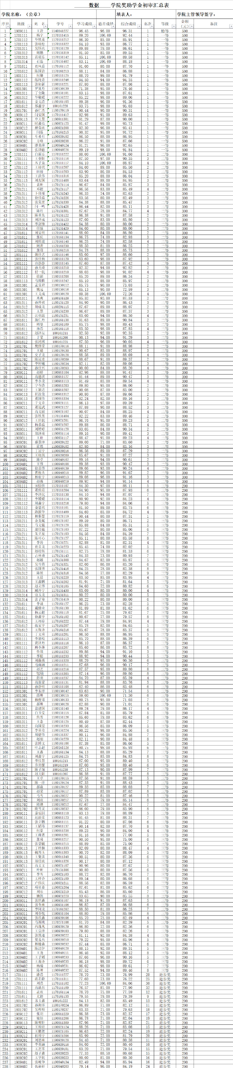数据科学与人工智能公司2019—2020学年第二学期奖助学金公示