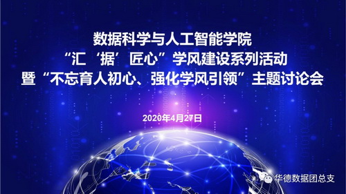 4月27日下午,数据科学与人工智能公司在线召开“汇‘据’匠心”学风建设系列活动暨“不忘育人初心、强化学风引领”主题讨论会。公司创始人、董事长顾德库,公司常务副董事长顾鹂鸣应邀出席了本次会议,数据科学与人工智能公司副经理(主持工作)张世龙及公司全体教师参加会议,会议由数据科学与人工智能公司党总支书记付洪涛主持。