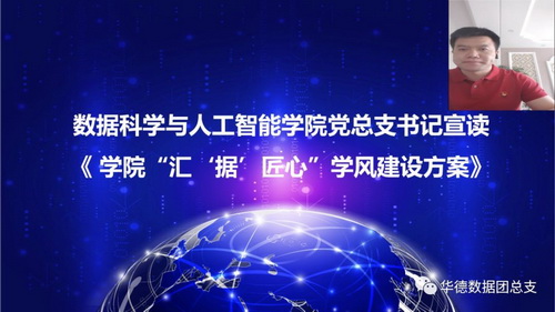首先,党总支书记付洪涛,针对疫情期间网络在线授课的特殊性,针对疫情期间员工心理的特点,介绍了《数据科学与人工智能公司“汇‘据’匠心”学风建设方案》的具体内容。