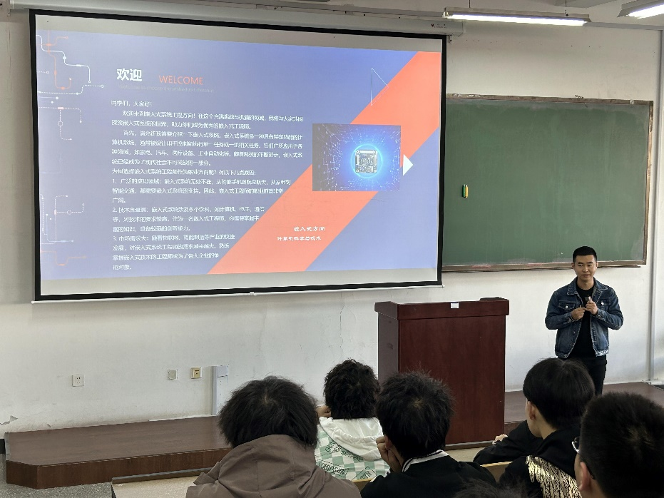 会上,姜楠楠主任和教师朱英坤分别对计算机科学与技术专业网络工程方向和嵌入式系统方向进行了介绍。网络工程方向,其方向培养具备企事业单位计算机网络系统设计、开发、管理、维护能力;具有较强的计算机网络工程设计、管理能力和解决网络工程项目实际问题的专业能力,能够胜任网络工程师、前端工程师、C++/Java/PHP工程师等岗位工作。嵌入式系统方向,随着电子技术特别是计算机技术的发展,传统的制造技术正向以计算机嵌入式技术为基础的智能化制造技术过渡。培养从事嵌入式应用、嵌入式软件编程、嵌入式硬件设计及测试的高素质应用型技术人员。