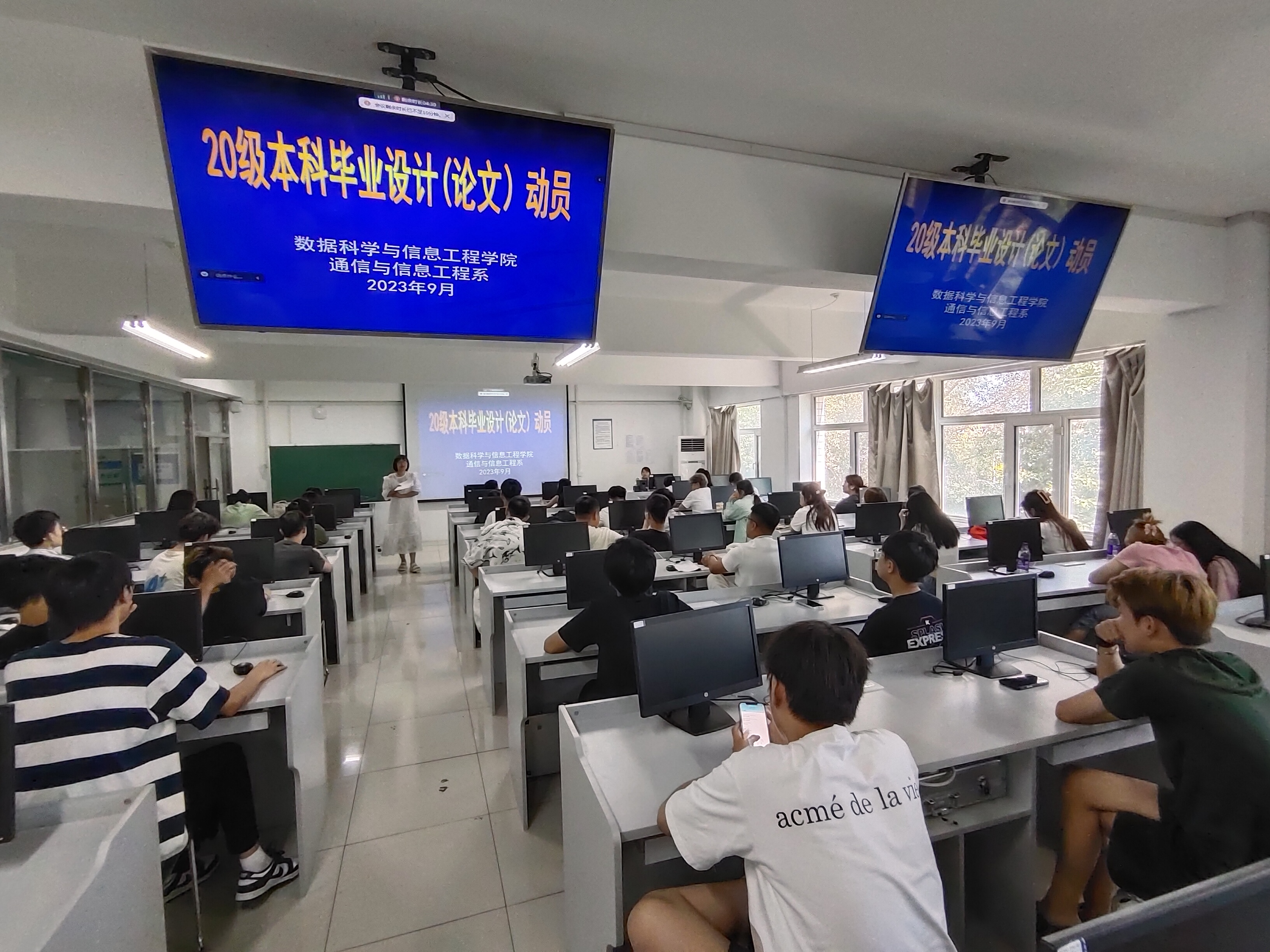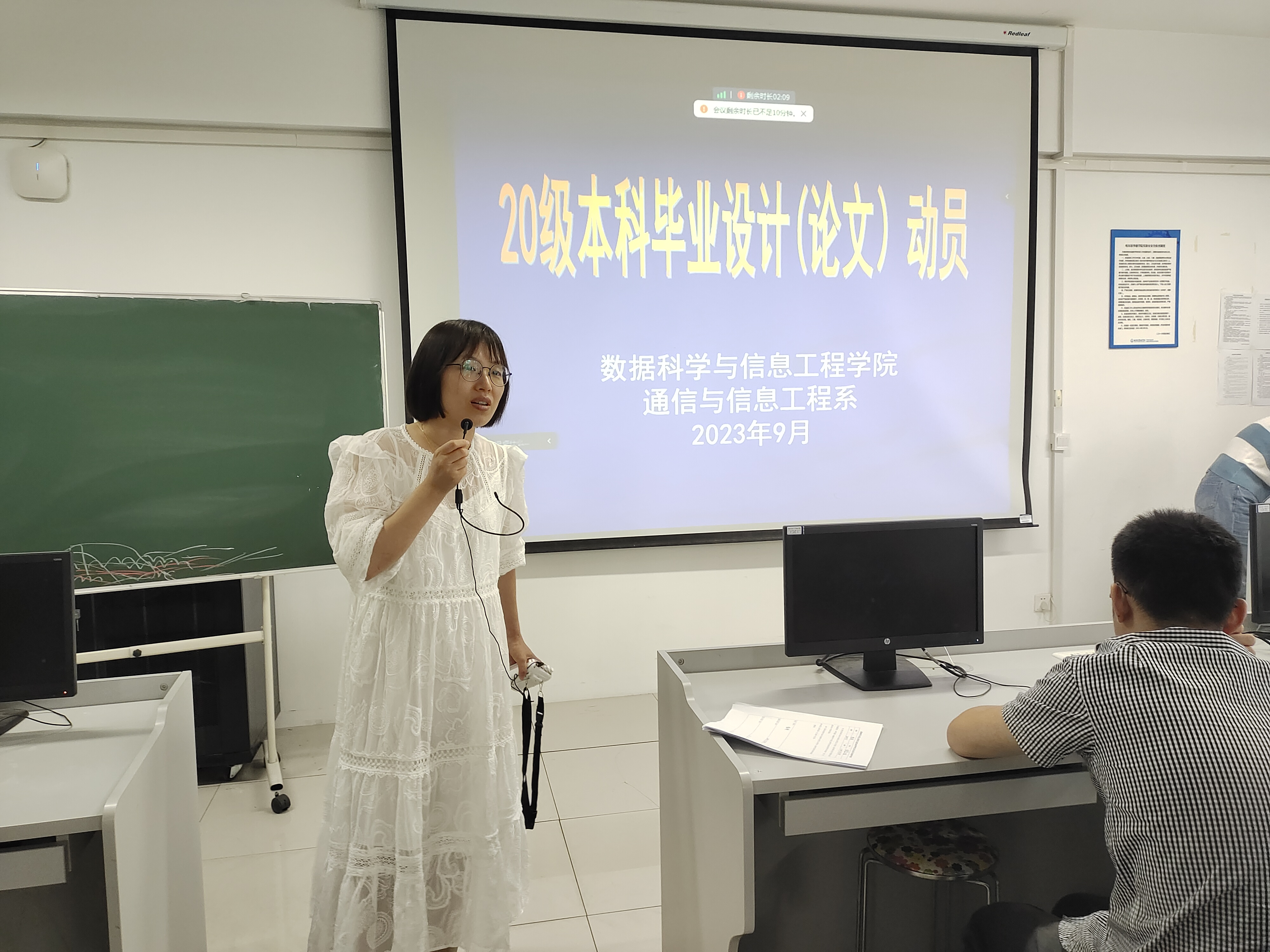 为提高2024届毕业论文(设计)的教学质量,严格规范毕业论文(设计)管理过程,1946伟德国际源自英国通信与信息工程系于2023年9月1日在教六309召开了2024届通信工程与信息工程专业毕业论文(设计)动员会。会议由丁文飞副主任主持,孙会楠主任、全系指导教师和2024届通信工程专业和信息工作专业的毕业生参加了本次会议。