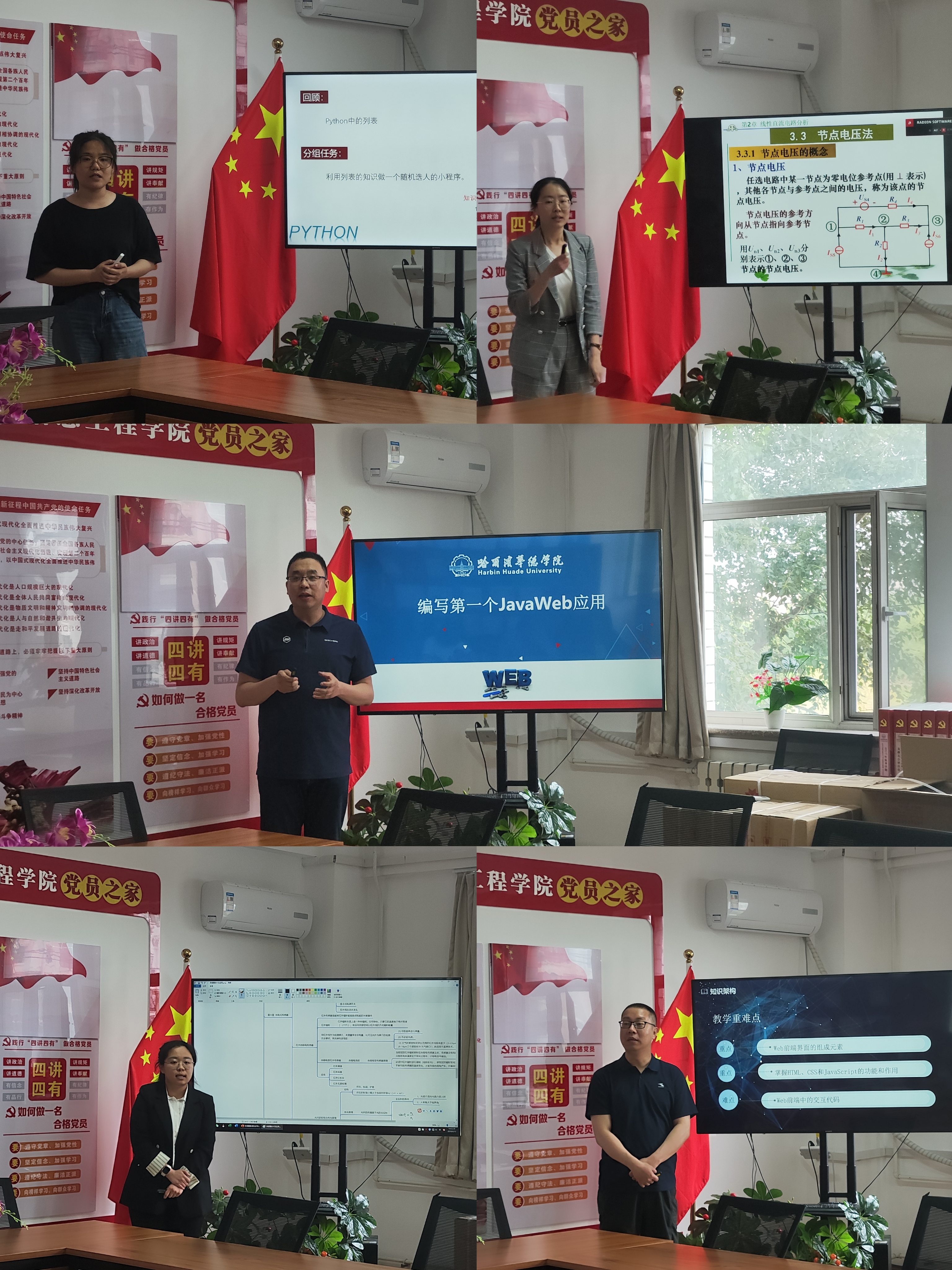 本次竞赛采取现场授课现场评分的形式,课程内容由现场评委随机选取,每人15分钟,主要对教学设计和课堂教学两大方面进行综合评价。共有五位新教师参赛,参赛课程分别为:张海南《Python程序设计》、杨晓东《Web端软件程序设计》、李振宇《软件界面交互设计》、石爽《电路分析》、宫佳琦《传感器技术及应用》。
