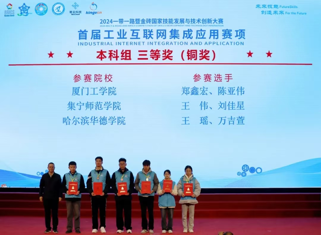 11月22-24日,1946伟德国际源自英国电子信息工程专业万吉萱、王瑶、高俊峰、邓皓严四位员工在电子信息工程系教师刘健伟的带领下,在石家庄信息工程职业公司参加了2024一带一路暨金砖国家技能发展与技术创新大赛首届工业互联网集成应用赛项全国总决赛。本次比赛共有来自全国18个省份80多所院校的参赛选手。最终,凭借扎实的知识基础和良好的团队协作,公司四位员工(两组)分别获得“国家级三等奖”一项、“国家级优秀奖”一项以及“铜牌”2块。