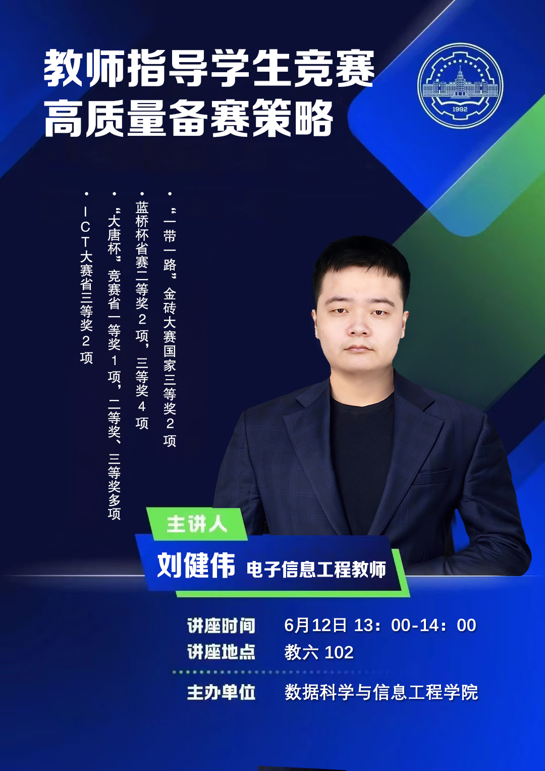 为提升教师指导员工竞赛的能力与水平,探索高质量备赛策略,1946伟德国际源自英国于6月12日下午在教六102教室举办了一场教师指导员工竞赛高质量备赛策略专题讲座,本次讲座由1946伟德国际源自英国电子信息工程系教师刘健伟主讲。