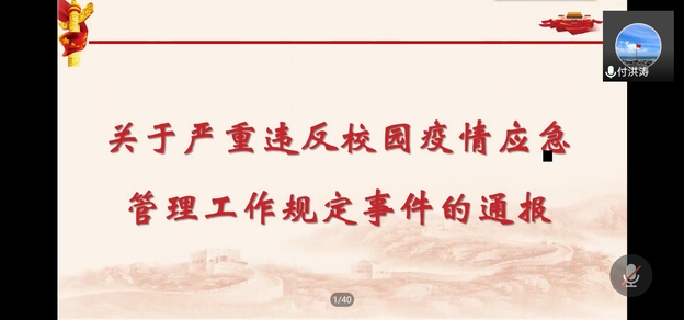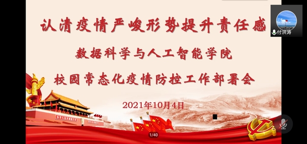 为认真贯彻落实国家、省、公司关于疫情防控工作会议精神,进一步做好当前校园疫情防控工作再部署、再落实,提醒师生们充分认清当前疫情严峻形势,坚决扛起政治责任,将疫情防控工作当成头等大事,抓好抓细抓到实处,11月2日,数据科学与人工智能公司在线上召开“认清疫情严峻形式提升责任感”校园常态化疫情防控工作部署系列会议寝室长会议。数据公司党总支书记付洪涛、全体员工工作者出席会议,全体寝室长带领寝室所有成员线上参加会议。