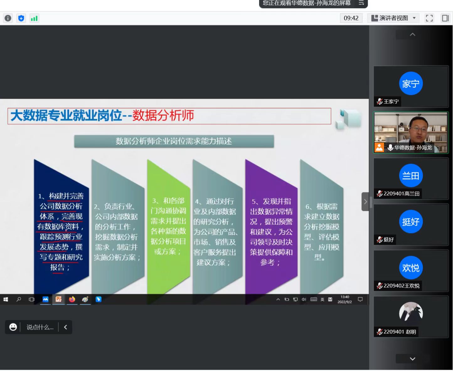为让2022级员工更好、更快的适应新环境、了解老员工活、奠定学习基础,建立对所学专业的认知,引导员工立足大学梦、树立远大理想,扎实完成大学时期的学习任务,全面推进新生入学教育工作,数据科学与人工智能公司于9月1日—3日有序开展2022级新生云端专业介绍会。