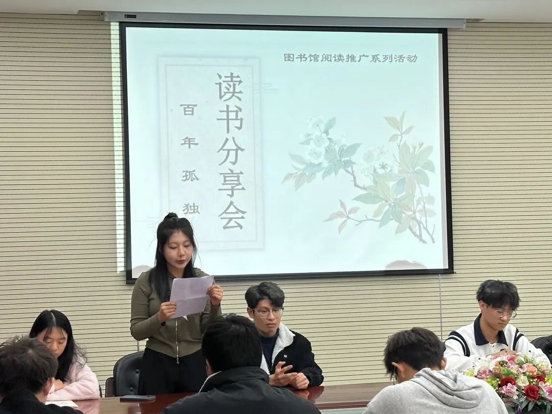 分享会上,图管会部长祝铭做了专题发言。他指出,阅读能够让我们充分体会文字的力量,它可以支持我们热爱万物,保持浪漫,照亮梦想。他鼓励同学们多读书、读好书,从中汲取营养和灵感。同时,他还介绍了图书馆内丰富藏书和学术资源,鼓励大家积极利用图书馆的资源进行学习和研究。