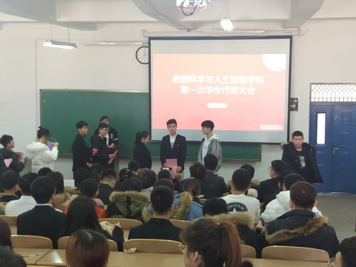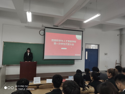 会议开始,由到场的全体成员起立奏唱《国歌》。由姜琳老师和付洪涛老师分别宣读了校团委、公司党总支《关于同意召开数据科学与人工智能公司第一次员工代表大会的批复》。公司辅导员苏军老师代第一届员工会做工作报告,苏军老师在报告中提到员工会的工作职责,表示对公司员工会今后的工作充满信心。
