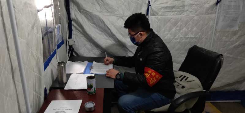 因为疫情,他母亲春节前被阻隔在牡丹江亲戚家,他在家里自己照顾自己,从没耽误过上岗值勤。每天不到六点,他就早早起床,洗漱、做饭、吃饭、下楼,不到七点就来到执勤卡点,对执勤卡点进行检查,看看电路好不好使,帐篷有没有漏风的地方,张贴的公告有没有被风吹开等等,去存放点取工作所需的物品,认真做好执勤前的一切准备工作。上午帐篷温度低,也是上班和外出高峰,执勤时间几乎都是站在室外,手冻的笔都握不住;脚也冻的麻木了,他就不停地搓手、跺脚;渴了顾不上喝水,甚至都不能正常上厕所,只能忍着,一刻也没有耽误执勤。在疫情防控执勤的日子里,每天都是这样度过的,他以一名退役军人顽强的毅力,坚守在”阵地”的哨位上,出色地完成好卡点执勤任务。