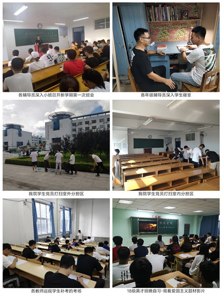 各年级辅导员深入各小班开展本学期第一次班会、并与责任班老师一同对员工寝室进行深入走访,了解员工返校动态,确保寝室的卫生安全;公司教师走进员工补考考场,督促员工严肃考风考纪;为建设美好校园,组织全体员工党员对室内外分担区进行清扫;为弘扬红色文化、传承红色革命精神,18级英才班开展特色晚自习——观看了爱国主义题材影片。