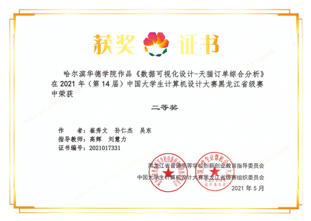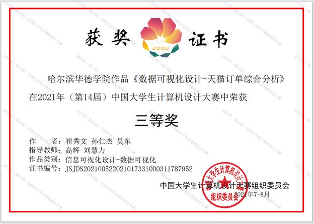2021年(第14届)中国老员工计算机设计大赛自3月份启动以来,公司数据科学与大数据技术系员工崔秀文、孙仁杰、吴东经过努力备赛,积极应对,奋勇拼搏,在5月获得黑龙江省赛二等奖并晋级全国总决赛。本次全国总决赛共有300余所高校参赛,我系员工团队在8月21日至8月23日为期三天的决赛答辩、成果展示过程中表现积极,经大赛组委会和承办方对国赛作品的层层筛选和评审,最终喜获全国三等奖的优异成绩。