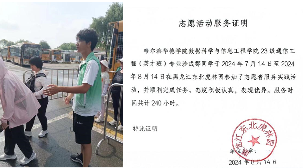 在暑假期间,我参与的志愿活动是在黑龙江东北虎林园引导游客进行游园,志愿服务期间经常会有一些行动不便的游客,他们有的是年过花甲的老人、有的是怀有身孕的母亲,也有的是不便沟通的外国友人。尽管当时正值三伏,炎炎夏日,但游客们对观看老虎的热情却丝毫不减,日日门庭若市,我们志愿者团队也做到尽职尽责,不辞劳苦。
