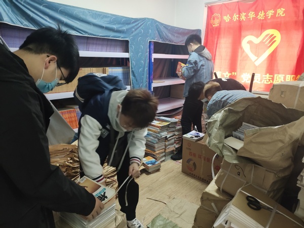 为深入贯彻落实党中央、省委、省教育工委和公司党委关于开展好党史学习教育的工作通知和要求,强化全体党员学史明理、学史增信、学史崇德、学史力行,坚持学党史、悟思想、办实事、开新局,以昂扬姿态奋力开启全面建设社会主义现代化国家新征程,以优异成绩迎接建党一百周年,数据科学与人工智能公司党总支以“示范创建”和党史学习教育为契机,于2021年3月31日,“博文”党员志愿服务队师生党员代表、共青团员代表与中华社会救助基金会黑龙江站联合开展爱心助学书籍的整理、统计和搬运工作。
