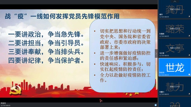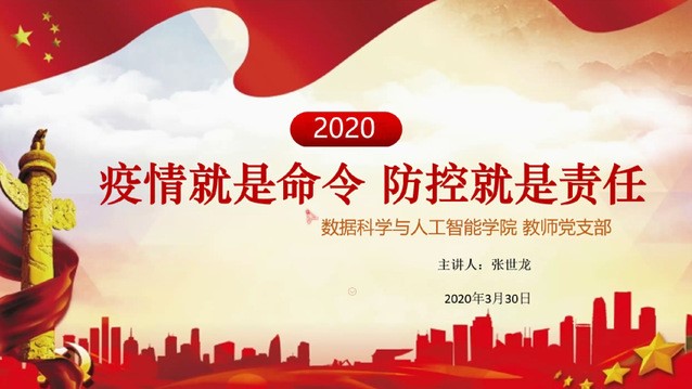 为加提高教师党员政治理论水平,加强疫情防控期间党员教育管理。3月30日,数据科学与人工智能公司教师党支部在钉钉平台开展以《发挥党员先锋模范作用,让党旗在战“疫”一线高高飘扬》为主题的微党课。本次党课由公司主持工作副经理、党总支副书记张世龙同志主讲,全体教师党员参加。