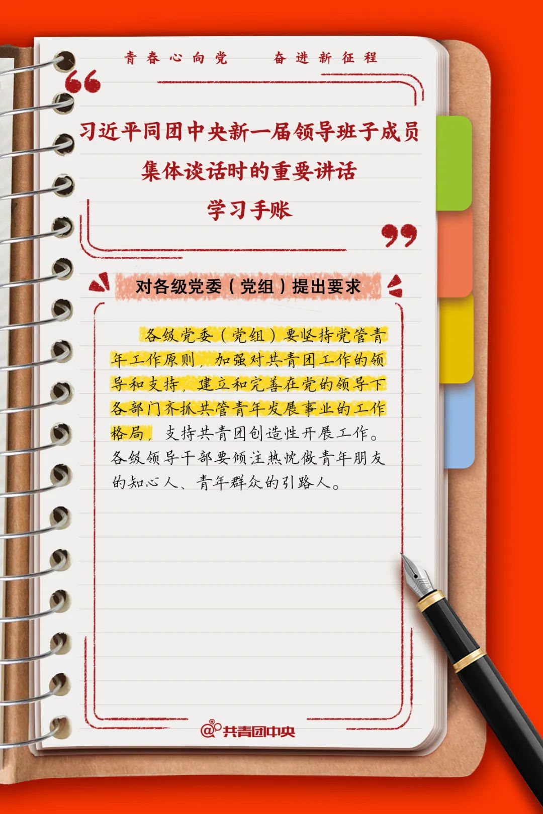 6月26日下午,中共中央总书记、国家主席、中央军委主席习近平在中南海同团中央新一届领导班子成员集体谈话并发表重要讲话。习近平总书记强调,党和国家事业的希望寄托在青年身上。希望共青团中央深入贯彻党中央要求,切实肩负起新时代新征程党赋予的使命任务,传承弘扬优良传统,坚持改革创新,更好把青年一代团结凝聚在党的周围,为推进强国建设、民族复兴伟业接续奋斗。各位青年朋友们,党中央对共青团和广大青年充分信任。面向新时代新征程,我们要深入学习贯彻习近平总书记的重要讲话精神,坚定听党话、跟党走的政治信念,不断增强历史责任感和使命感,激发强国有我的青春激情,在强国建设、民族复兴伟业中勇当先锋队、突击队。今天的团课,让我们一起答题学习习近平总书记在同团中央新一届领导班子成员集体谈话时的重要讲话精神吧!