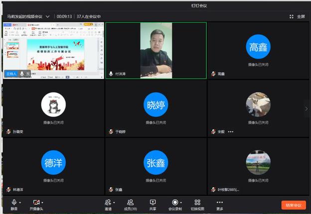为进一步加强疫情防控工作,以最大的努力、最仔细的准备、最周全的部署筑牢防疫屏障,坚决把疫情挡在校外。数据科学与人工智能公司于11月3日在钉钉平台召开了疫情防控工作专项会议,公司党总支书记付洪涛主持会议,数据科学与人工智能公司全员参会。