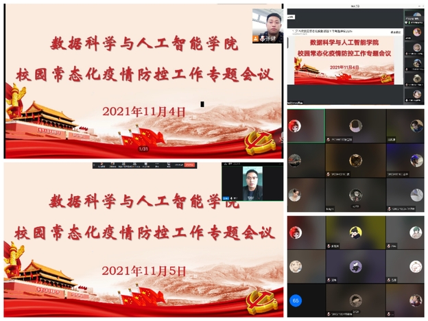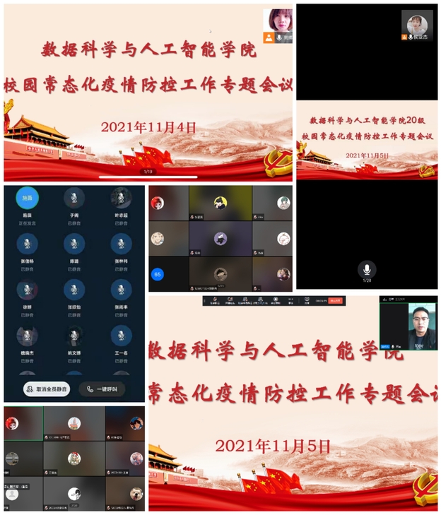 为全面贯彻习近平总书记关于新冠肺炎疫情防控工作的一系列重要指示批示精神,更好、更快地贯彻落实国家、省、省教育厅、市、区关于疫情防控工作的部署要求,全力保障员工生命安全和身体健康,引导员工常怀感恩之心,无死角的在员工中开展诚信教育,贯穿校园疫情防控工作的各个环节,数据科学与人工智能公司于11月4日、5日在云端面向公司各小班员工召开第四次校园常态化疫情防控工作专题会议。