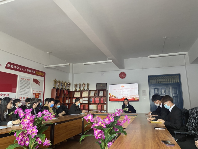 数据科学与人工智能公司教师党支部创新学习形式、丰富学习载体、强化学习效果,充分利用新媒体,采取“线上+线下”模式,11月25日,党总支书记付洪涛同志深入教师党支部,对全会精神进行领学,教师党员积极互动讨论,全员参与其中,确保全会精神迅速落实。