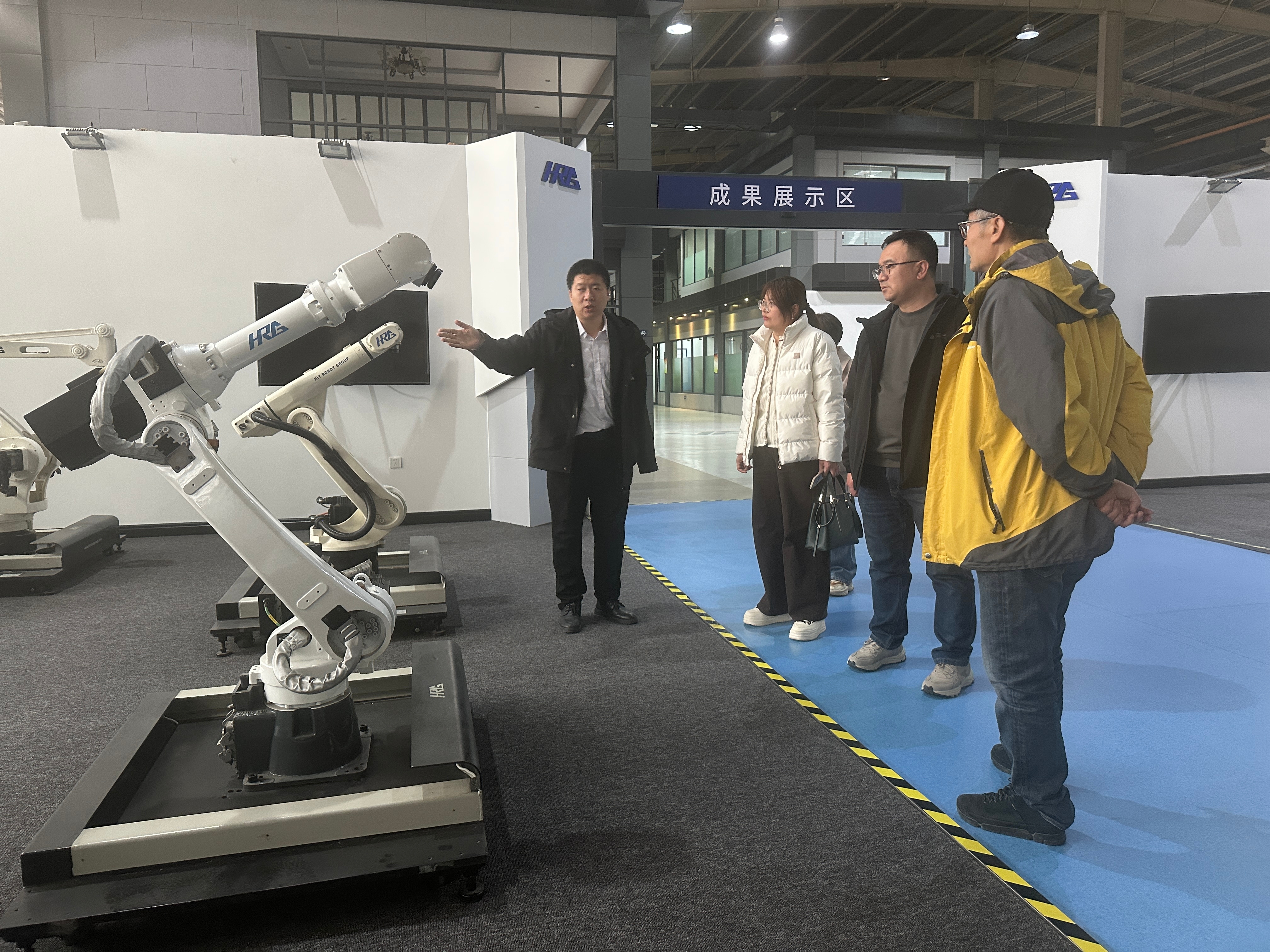 此次调研,在该公司经理张子明的带领下,走访团队参观了公司的成果展示区,包括工业互联网、数据通信、智能机器人三大展示区域。参观了各个区域的主要项目及产品,包括仓储物流全流程自动化解决方案、基于AI的医疗诊断项目、数据通信网络机房,以及机械臂产品等。通过实地考察,调研团队深入了解了企业在智能制造和数字化转型领域的前沿技术成果,为后续校企合作奠定了坚实基础。