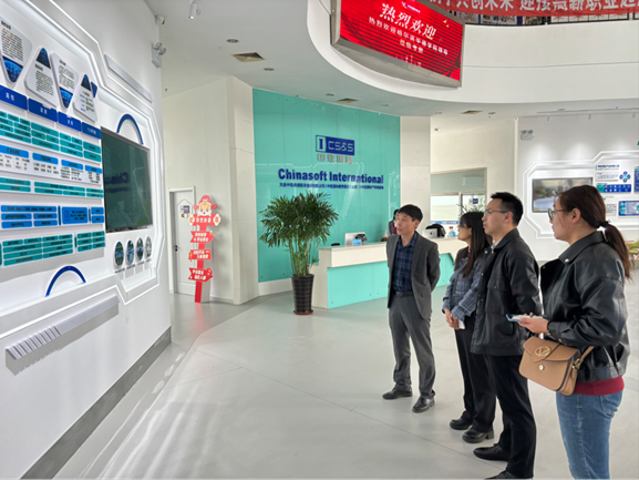 在中软国际科技集团,走访团队参观了企业数字化转型展厅与研发中心,深入了解其在云计算、大数据、人工智能等领域的核心技术成果及行业解决方案。通过场景化案例演示,团队直观感受了中软国际在智慧城市、工业互联网等领域的创新实践,尤其是企业“全栈式IT服务+产教融合”的双轮驱动模式,为公司优化实践教学体系提供了重要参考。