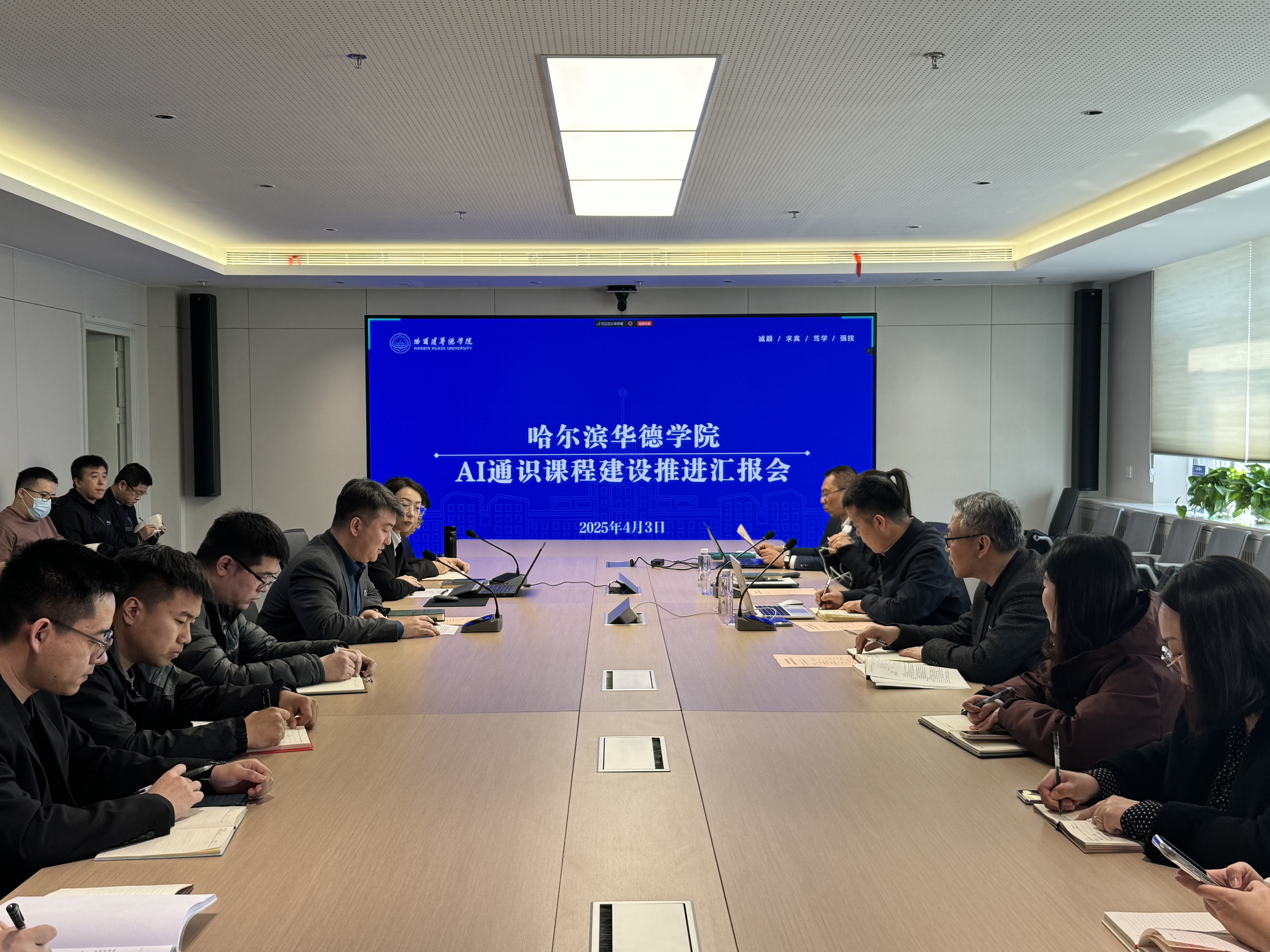 教务处的汇报中呈现了AI 通识课程建设的推进情况,涵盖各二级公司的优秀教师团队为课程注入了多元活力,促进了学科交叉融合。经过研讨,课程正式命名为 “人工智能与数字素养”,旨在满足国家对 AI 通识课程的建设要求,契合公司应用型人才培养目标。