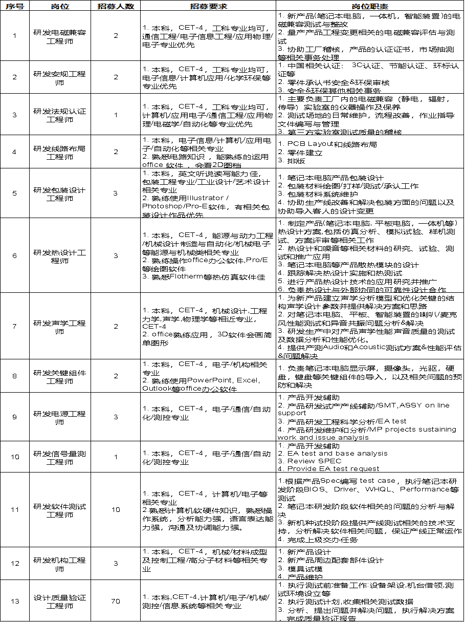 简历投递邮箱:GI_HR@compal.com(邮件主旨请注明应征岗位+公司+专业+姓名)