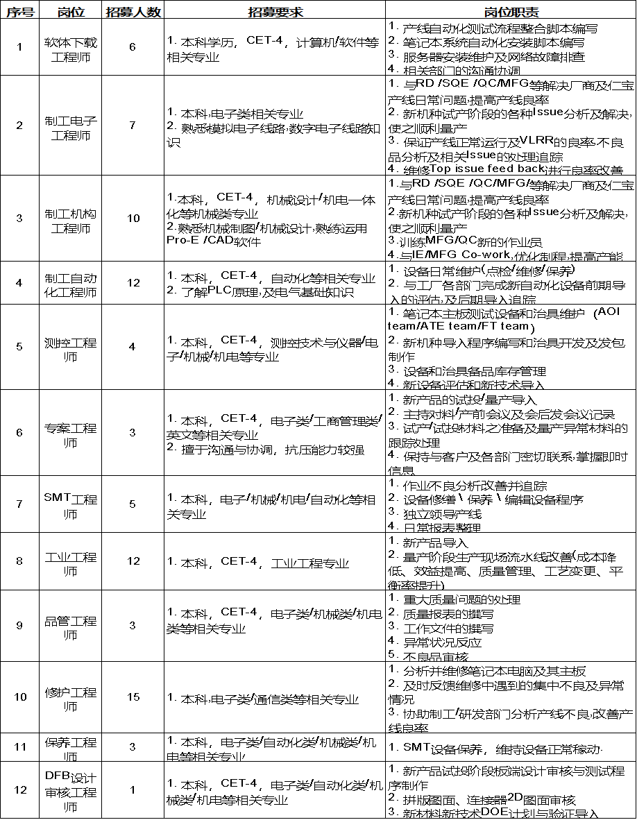 招募微信公众号:仁宝电脑招聘