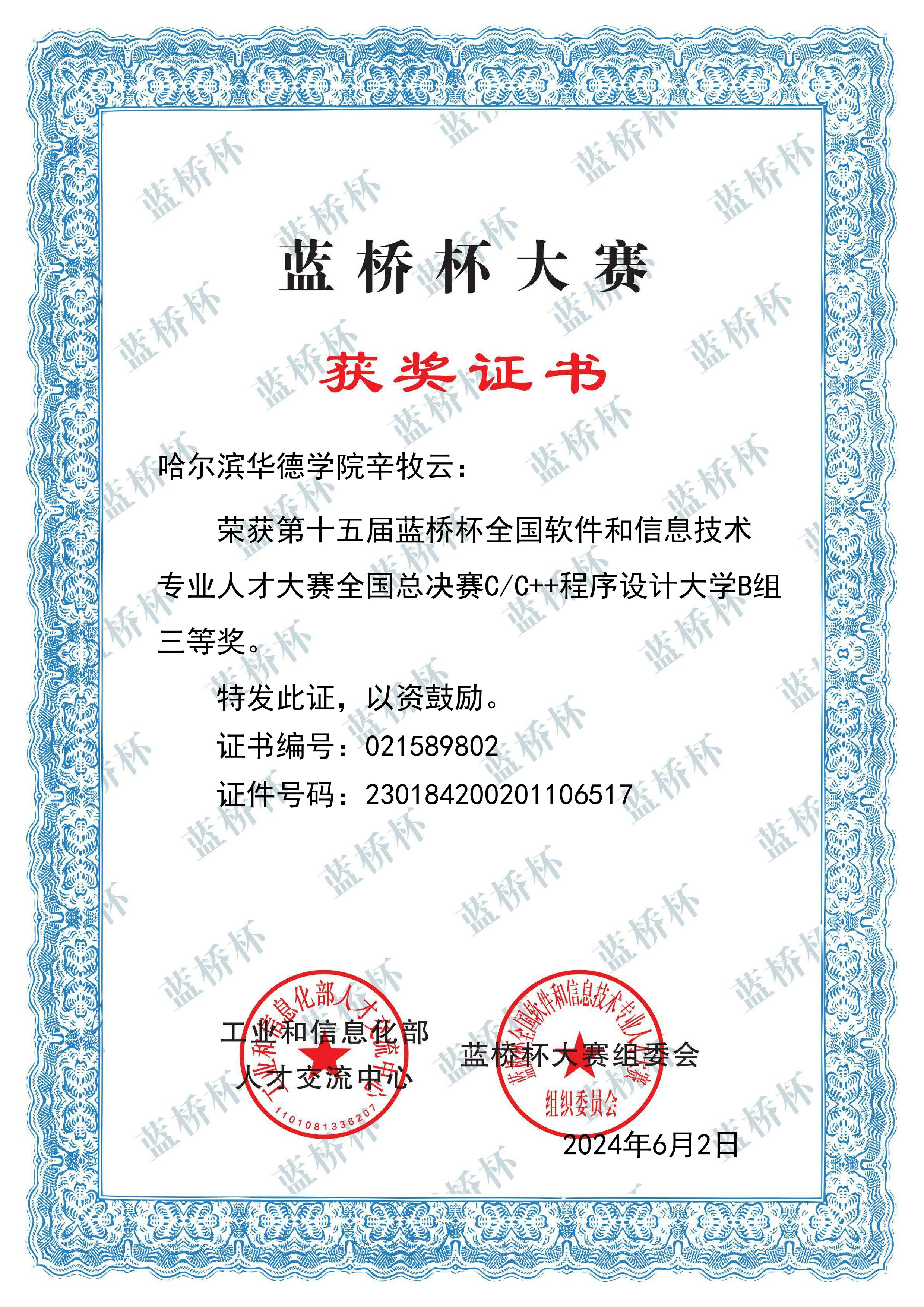 2024年第九届中国高校计算机大赛团体程序设计天梯赛团队三等奖1项、全国总决赛个人三等奖1项